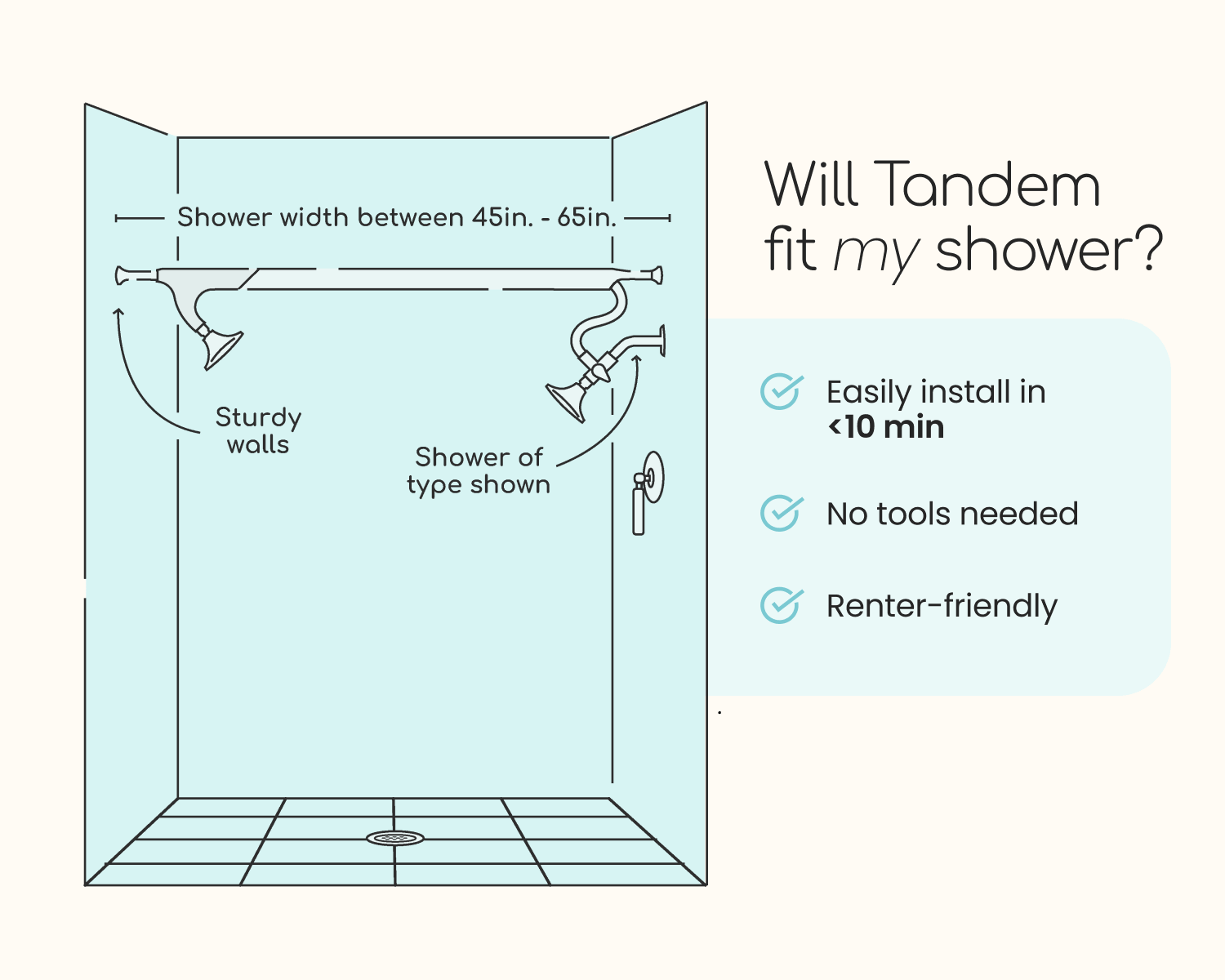 Use this free bumper as a way to install Tandem into shower spaces between 45 inches and 56 inches wall-to-wall. Only one needed per Tandem. Price includes free shipping.